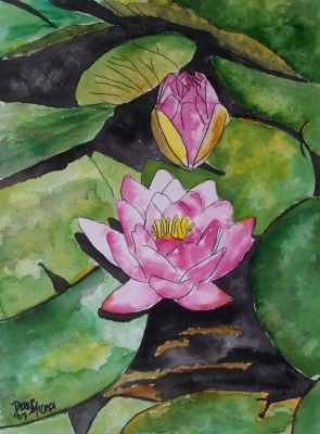 "Water Lily Pad Flower watercolor painting" Flower watercolor paintings, 12 x 16 inch modern original watercolor lilypad water lilies available as an original painting and a fine art print in various sizes, see below.